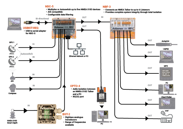 - Flexibiliteit: werkt met veel NMEA-0183 apparatuur en RS232 systemen.